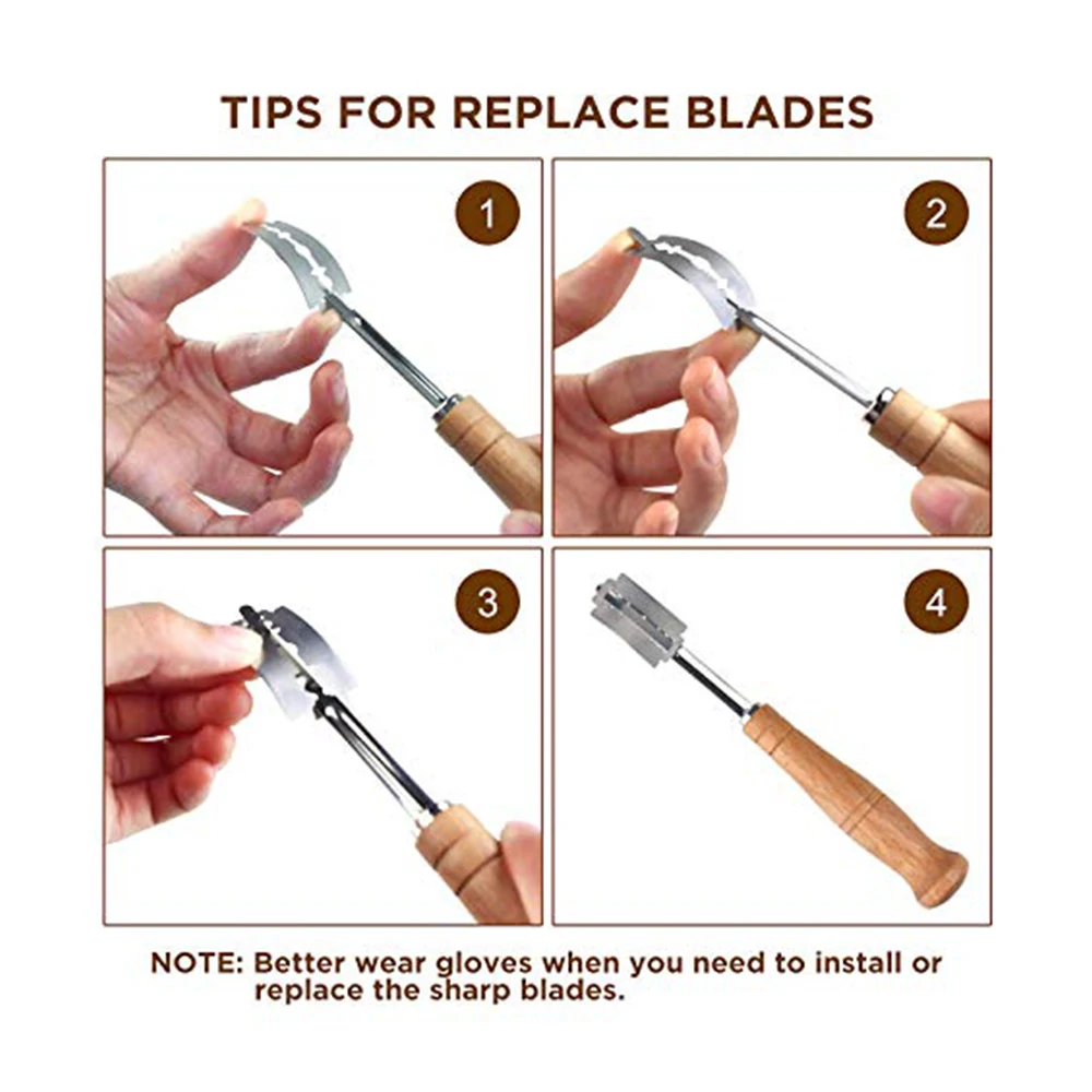 Wooden Handle Sourdough Bread Scoring Lame Bread Slashing Tool with Blades