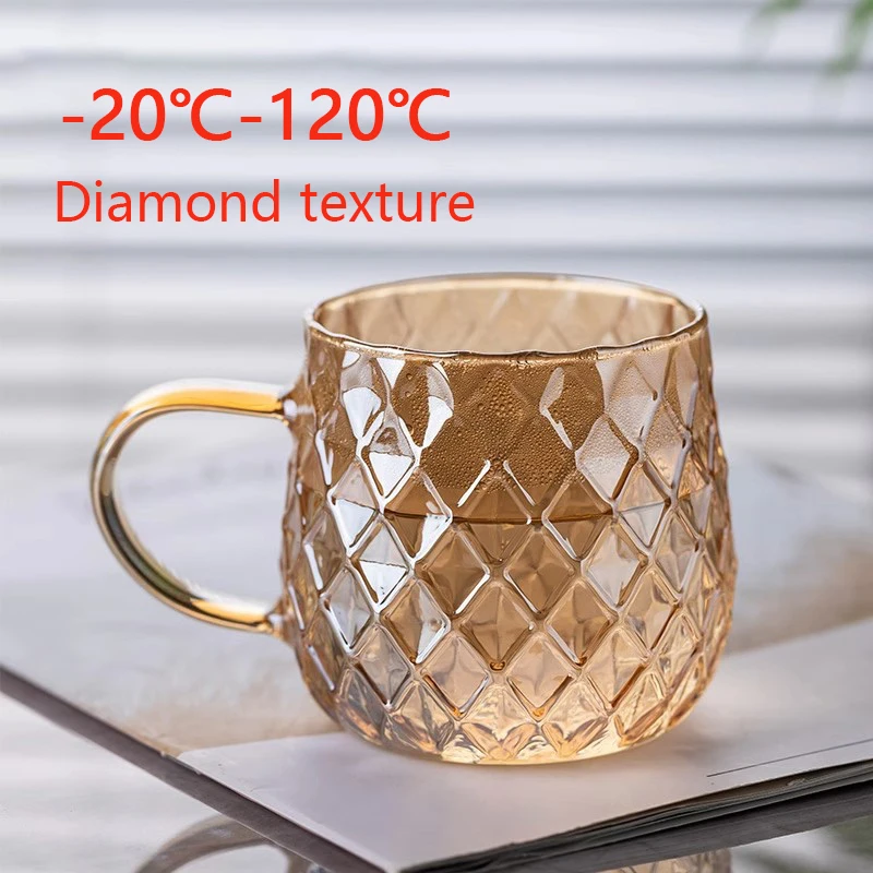 Diamond Textured Glass Cup Golden Teacup Mug With Handle Household Drinkware
